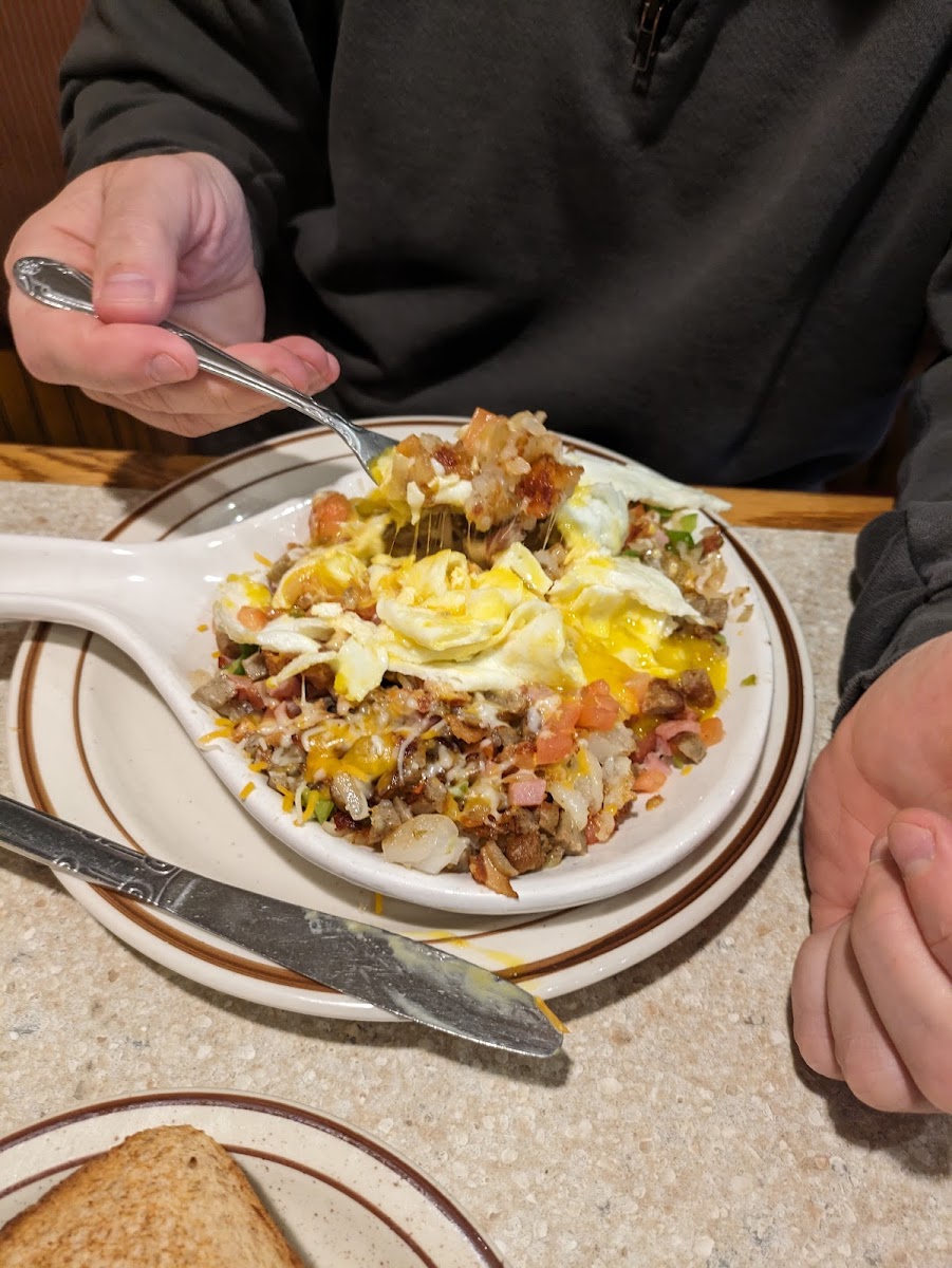 Great local place for breakfast. Wonderful family owned restaurant. We've been coming here for years. Every time we return home for a visit, we make a point to grab breakfast. I'm a huge fan of their hot chocolate, French toast, and hasbrowns.